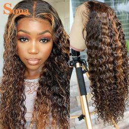 4 30 Piano Colored Highlight Wig Frontal Pre Plucked Brazilian Remy Curly Human Hair Deep Wave Lace Front Wigs For Women